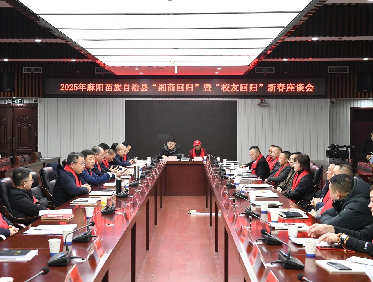 1月26日下午,在新春佳节来临之际,麻阳县委、县政府召开2025年“湘商回归”暨“校友回归”新春座谈会,畅叙赤子爱乡之情,共商家乡发展大计。县委书记江涛主持并讲话,县..